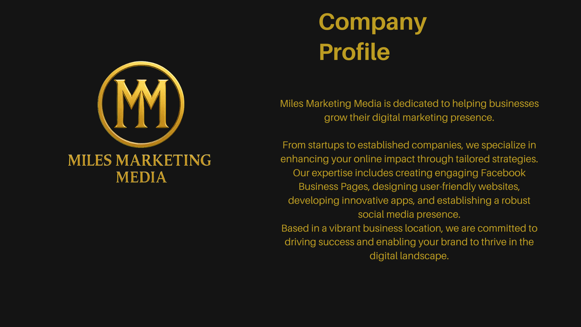 Miles Marketing Media boosts your brand online through targeted digital and social media marketing. We create strategies that engage audiences, increase visibility, and drive real results